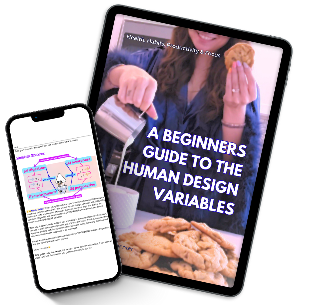 Get your full Human Design chart (including variables) along with a 10-page free guide to get you started on your Experiment!